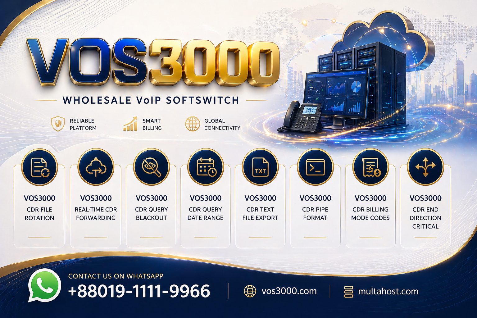 Master VOS3000 CDR text file export with SS_CDR_RECORD_TO_FILE and SS_CDR_RECORD_NONCONNECT. Configure pipe-delimited CDR output, file rotation, and non-connected call logging.