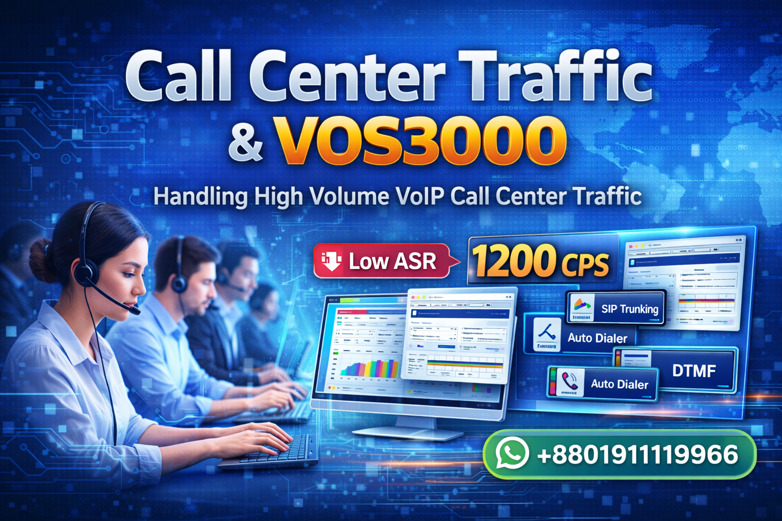 Call Center Traffic explained with VOS3000 softswitch. Learn what VoIP call center traffic is, CPS, ASR issues, junk traffic handling,…