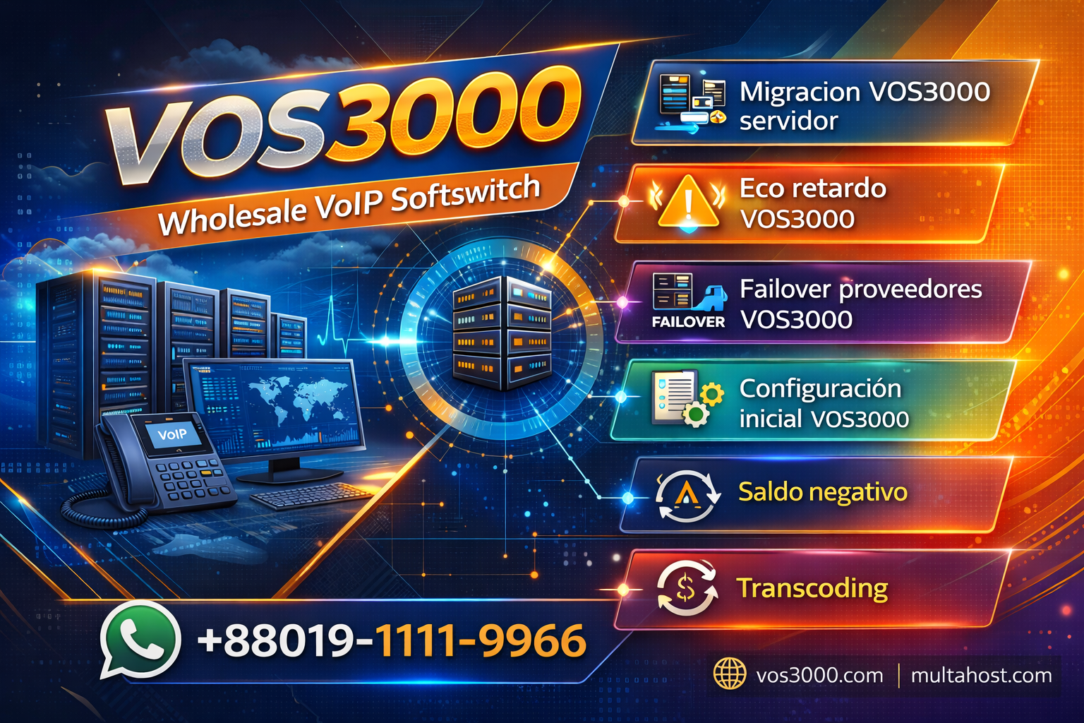 Configuracion inicial VOS3000 despues de instalar: agregar primer proveedor, crear cuenta SIP, tabla de tarifas y primera llamada de prueba.…