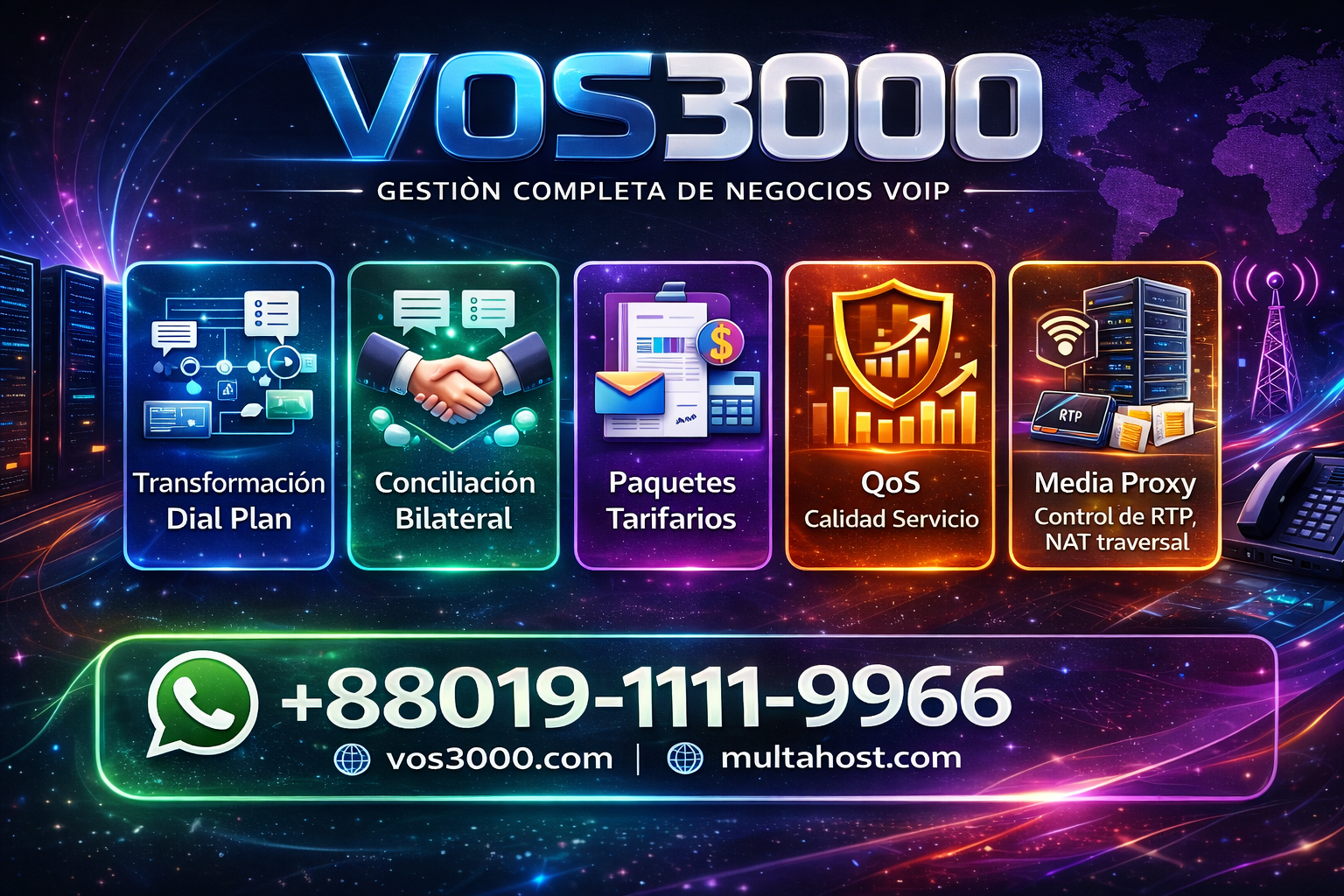 Guía completa del VOS3000 Softswitch: configuración de servidor, gateways SIP, enrutamiento, facturación, CDR, seguridad, monitoreo y mejores prácticas operativas para…