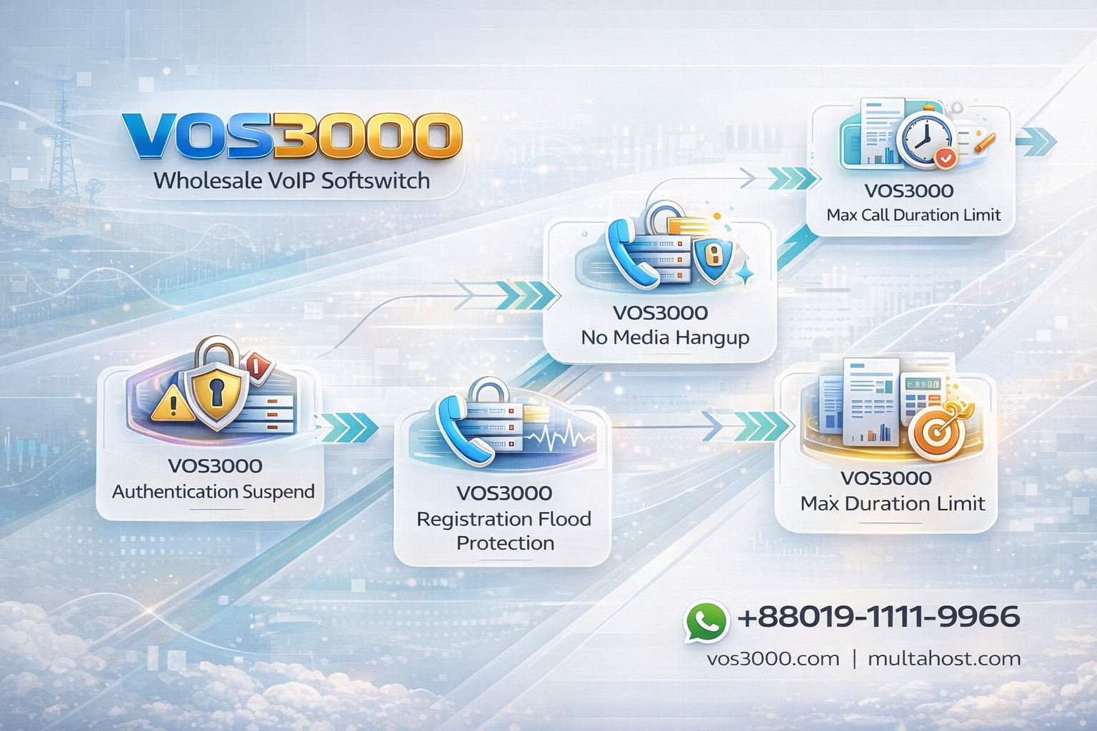 VOS3000 max call duration limit prevents excessively long calls that drain account balances. Configure SS_MAXCALLDURATION and call remaining time warning…