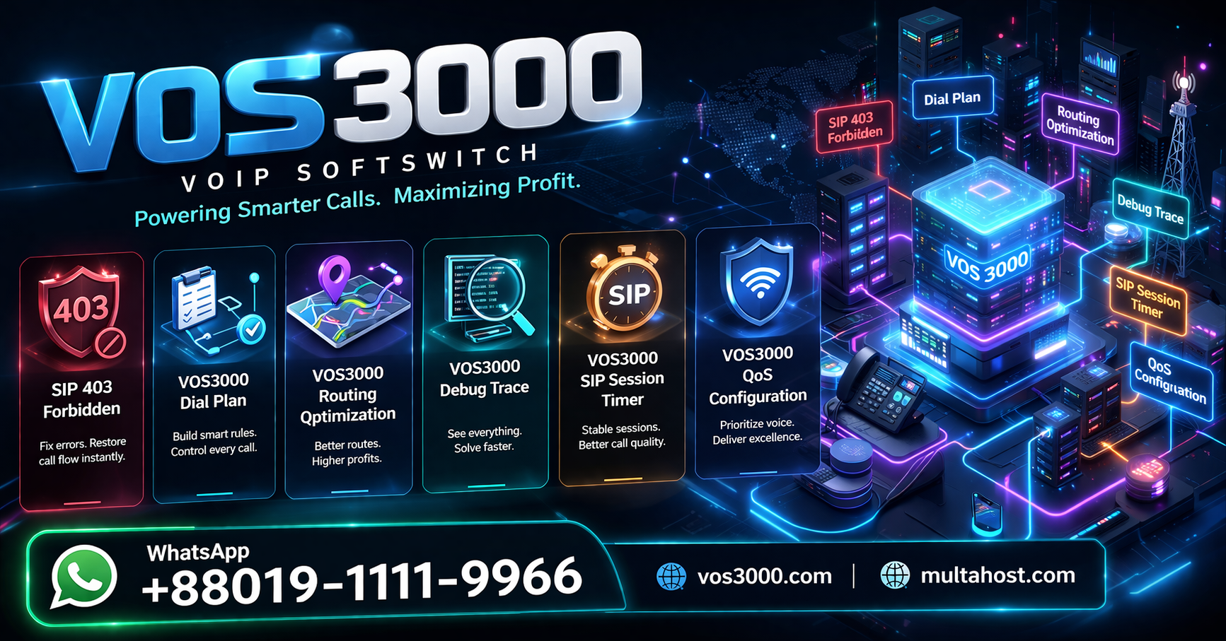 SIP 403 forbidden, VOS3000 QoS configuration, VOS3000 debug trace, VOS3000 SIP session timer, VOS3000 dial plan, VOS3000 routing optimization